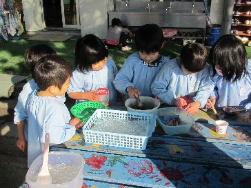 だんごむしの家を作ってあげたり、砂場で裸足になって