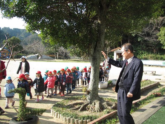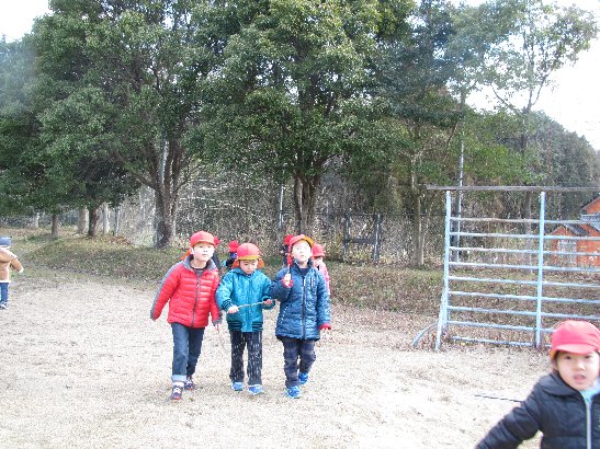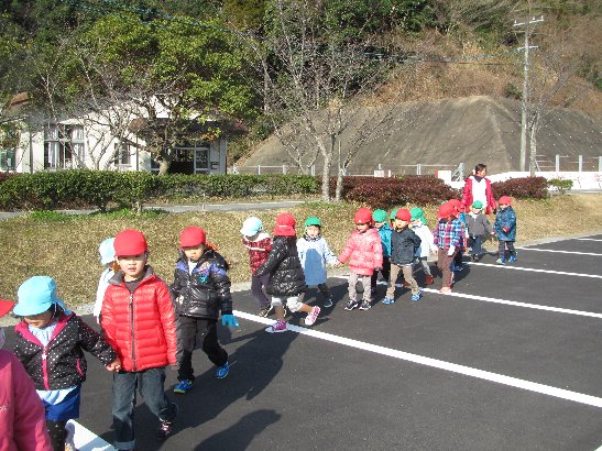 寒かったけど、防寒着を着て園長先生に「行ってきます」の挨拶をして歩いて