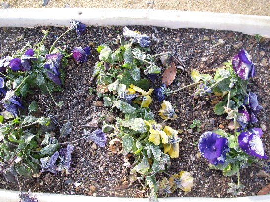パンジーの花真っ白でした。また、プールの水も凍っていて、
