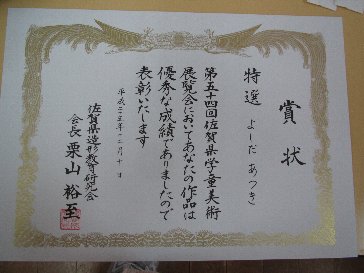 学童県展の表彰式がありました。特選7人。準特選6人でした。13人の子ども達が表彰状を貰い、驚きました。凄いことです。