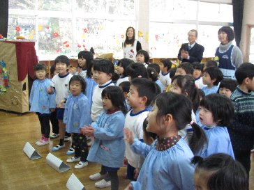 幼稚園で楽しかったことをお話したり、先生たちから子ども達へ