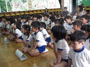 幼稚園で楽しかったことをお話したり、先生たちから子ども達へ