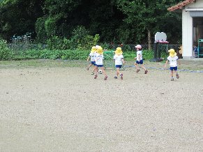 お兄さん、お姉さん達と一緒に、3歩当てや王様ドッジボール、警察泥棒ごっこをして、