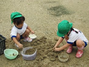 だんごむしの家を作ってあげたり、砂場で裸足になって