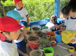 子ども達は上手にプランターに植えて、優しく土のお布団をかけてあげていました。