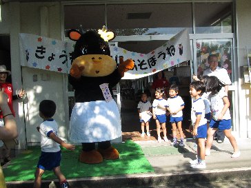 いまりんモーモちゃんが、登園のときに、お迎えをしに