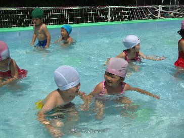 黒川小学校のプールで泳ぎました。広いプールで怖かっ