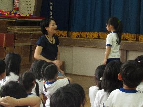 全体の集まりでは、園長先生から