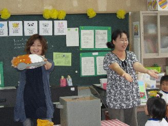 幼稚園で楽しかったことをお話したり、先生たちから子ども達へ