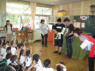 小学5年生にプール交流のお礼のプレゼントを渡しに