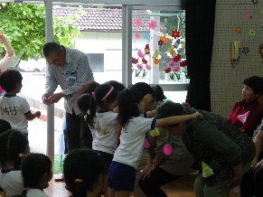 幼稚園で楽しかったことをお話したり、先生たちから子ども達へ