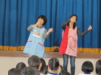 舞台では、「カレンダーマーチ」を歌ったり、「よっちょれ」を踊ったりして、