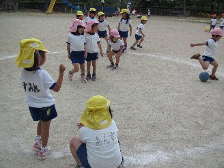 左・・・・年長組 転がしドッジボール。(「警察泥棒