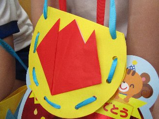 右・・・・年少組 ポシェット  右下・・・年長組 大きなメダル  下・・・・年中組 クラス寄せ書き