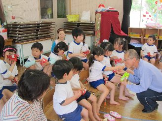 幼稚園で楽しかったことをお話したり、先生たちから子ども達へ