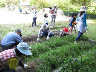 園の畑の草むしりをしました。子どもたちも手伝ってくれたので助かりました。ありがとう!