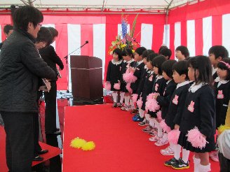 小学校の卒業式です。年長・年中児が見送りをしました。