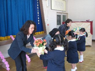 3月まで、お世話になった優しい先生方とのお別れの式がありました。「本当にお世話になりました。また遊びに来てください」