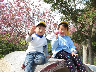 年長児と年中児で、名村大公園へ散歩に行きました。
