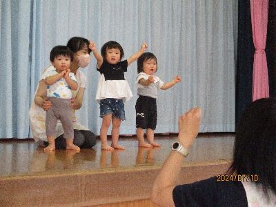 出し物は、はと組さんが「とんとんとんアンパンマン」をしてくれました♪とっても可愛かったです(*^-^*)