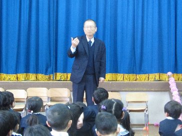園長先生が、身振り手振りでの話しをされ、子供たちは、