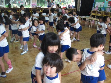 踊りました。体操の、ギュっと、抱っこしあうしぐさが、