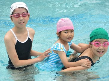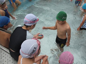 体操をして、小さいプールで、「水歩き」「宝探し」を楽