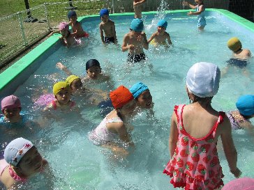黒川小学校に行きました。「プール遊び楽しかったよ」