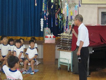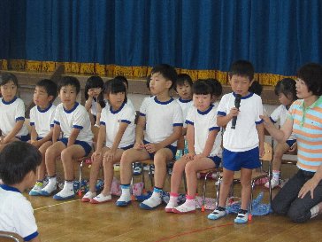 1学期の終業式がありました。園長先生のお話は、「今夜の