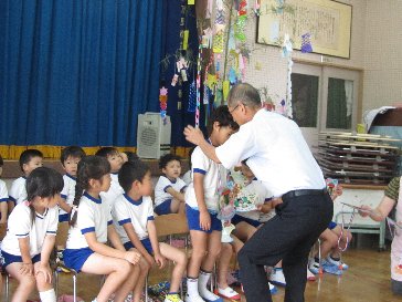 まず、園長先生から、ペンダントのプレゼント渡しです。