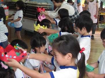 ゆり組は、冠を作って、プレゼントしました。プレゼント