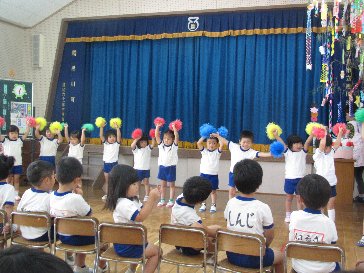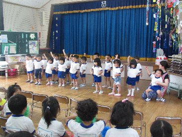 夕方、ゆり組さんの「はじめのことば」があり、夏祭りが