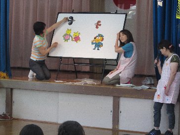 職員の出しものは、パネルシアターで「犬のおまわりさん」の