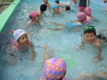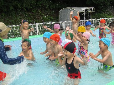 やっと晴れて、プール遊びをしました。みんな、嬉しそう!