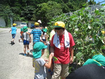 翌日、ゆり組の子どもたちは、5年生にプール交流とキュウリ