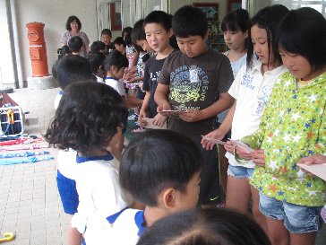 収穫のお礼の手紙を渡しに小学校に行きました。