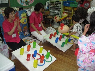 「輪投げコーナー」です。係りのお母さん方が、一緒に