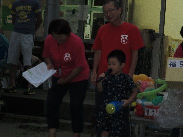 踊りを踊った後は、福引会です。自分の名前が呼ばれると
