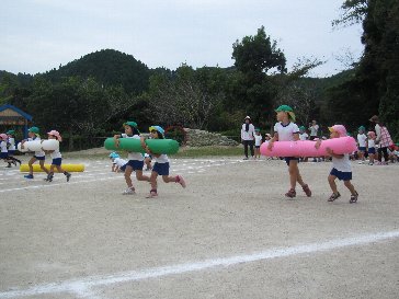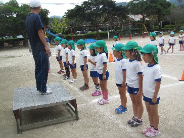 運動会を前に、園長先生から、「速く走るコツ」を教えてい