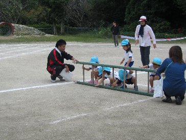 さくら組親子レク「ロケット出発!」で、梯子くぐりの場面