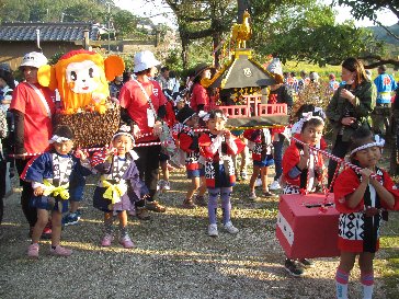 もも・すみれ組は、いまりんもーもちゃんのみこしを担いでいます。