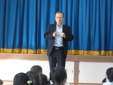 全体の集まりで、園長先生から、お話を聞きました。
