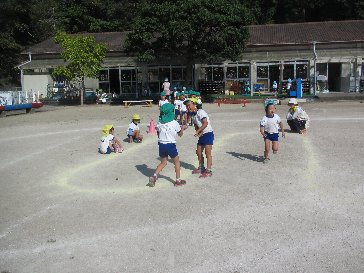 お兄さん、お姉さん達と一緒に、3歩当てや王様ドッジボール、警察泥棒ごっこをして、