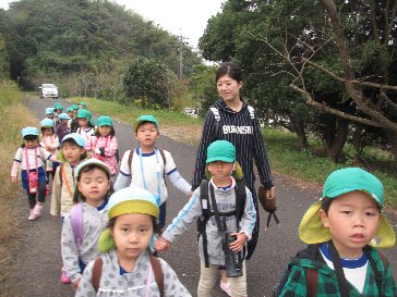 年長・年中児は、黒川公民館から歩いて行きました。年少児は、