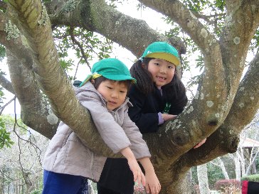 はしごを上ったり下ったりするアスレチック遊びをしたり、