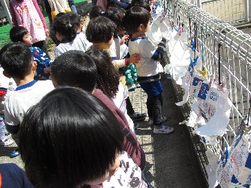 小学校の卒業式です。年長・年中児が見送りをしました。