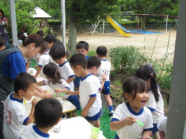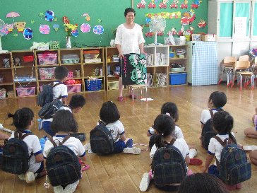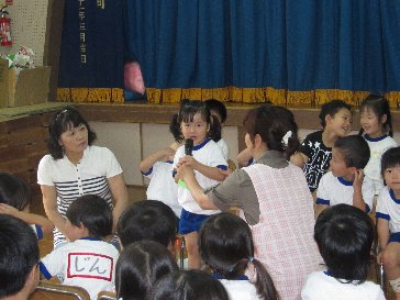 幼稚園で楽しかったことをお話したり、先生たちから子ども達へ