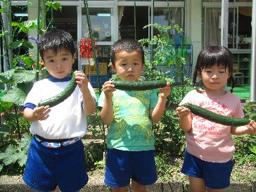 トマトやきゅうり、ピーマンなどの苗を植えました。