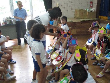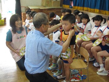 園長先生から、プレゼントを一人ひとりかけてもらいました。