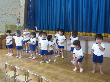 さくら組さんは、「ぽよよん行進曲」を踊りました。